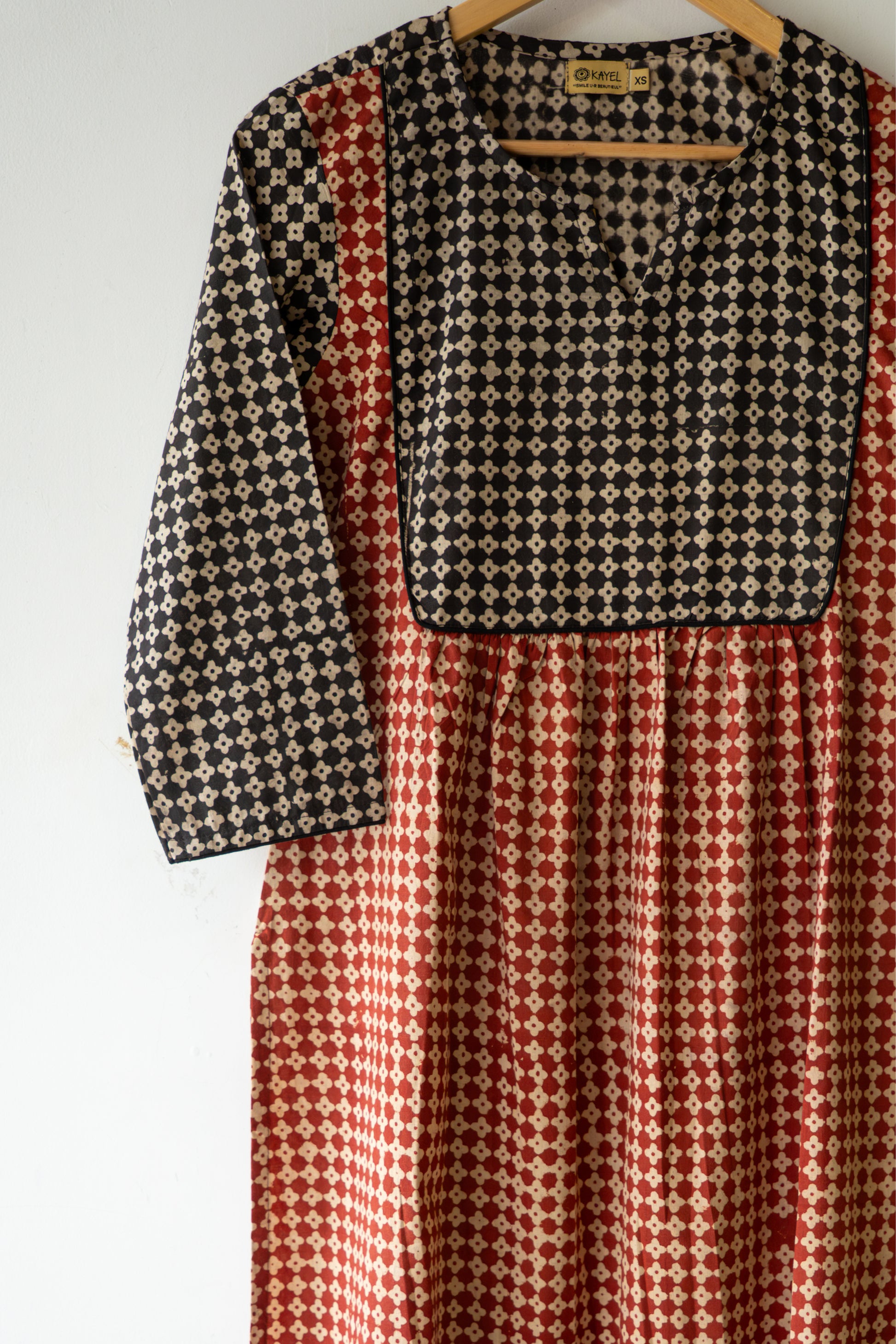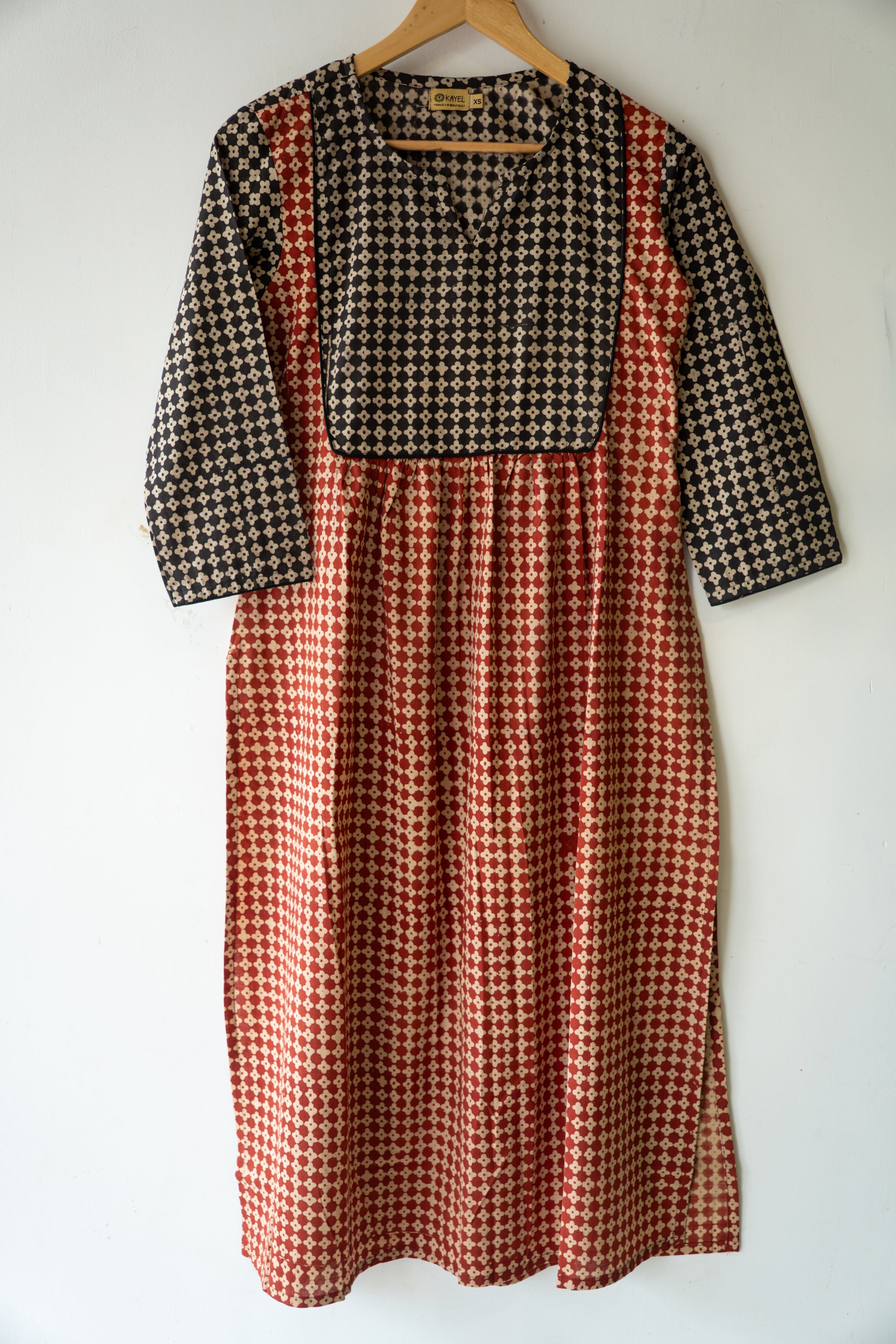 Block printed straight kurta with yoke & gathers.